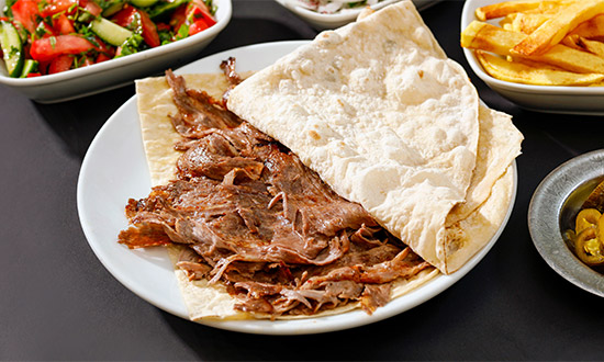 İncecik kesilen etler, özel döner sosuyla marine edilerek pişirilir. Yanında çıtır patates kızartması, taptaze salata ve sumaklı soğan ile servis edilir. Dönerin en klasik ve sade hali.