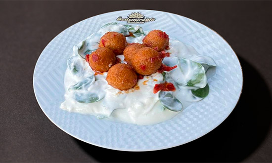 Süzme yoğurt ve semizotu ile hazırlanan ferah cacığın üzerine, yağsız etle harmanlanmış ince bulgurdan misket gibi yuvarlanmış Arap köfteleri yerleştirilir. Üzerine gezdirilen sosla damakta iz bırakır.